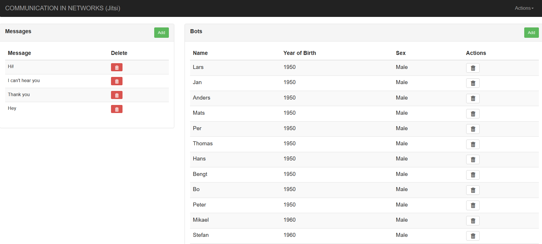 On the settings page you can add the predefined messages that can be used by the bot puppeteer. You can also manually add bot names that are going to be used for the random selection when you add them to a call.